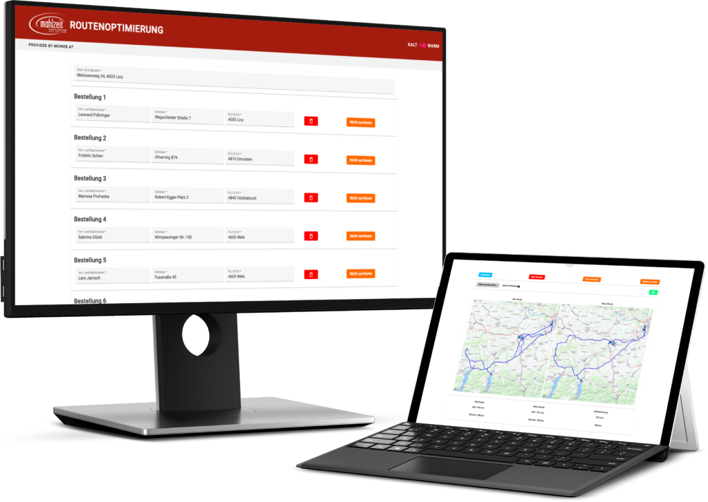 Einer dieser Mängel, ist die fehlende Funktion der Routenoptimierung. Bei einem Betrieb, dessen Geschäftsmodell auf dem Ausliefern von Essen auf Rädern basiert ist diese Funktion natürlich von Bedeutung. Bisher wurden die Routen händisch im System angeordnet. Dies erledigten die Mitarbeiter mit einer Tasse Kaffee, viel Diskussion und einer Oberösterreich-Karte, welche an der Wand des Büros hängt.
